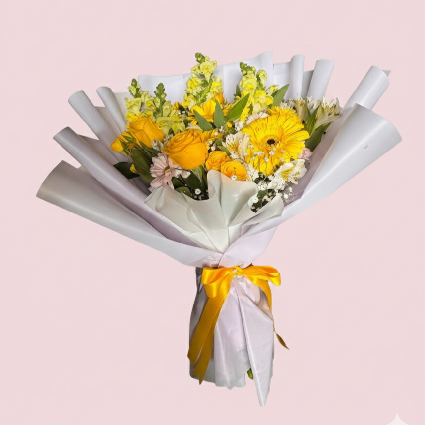 Ramo de 24 Rosas Rosas con alstromelia amarilla