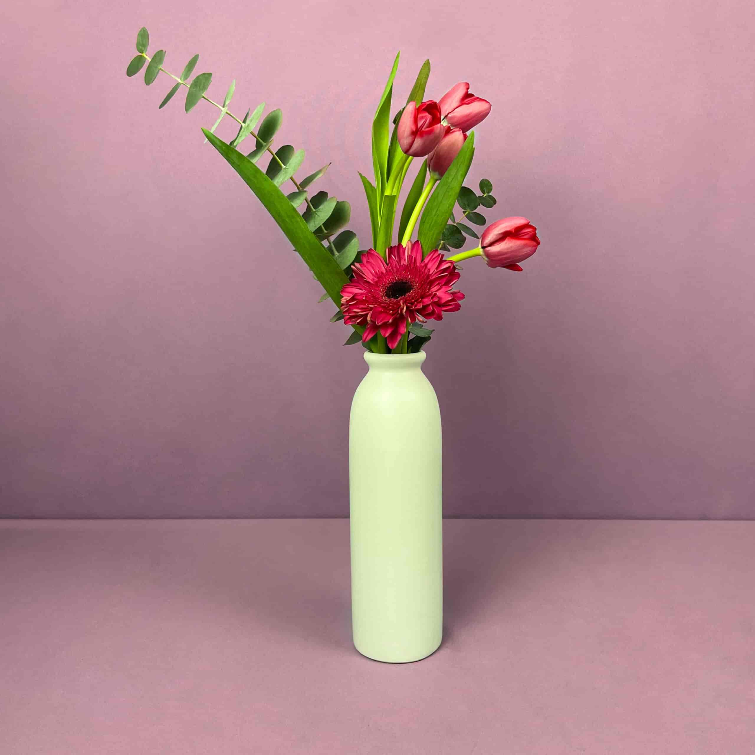 Jarrón Armonia con 4 Tulipanes y Gerbera