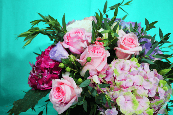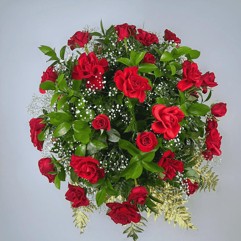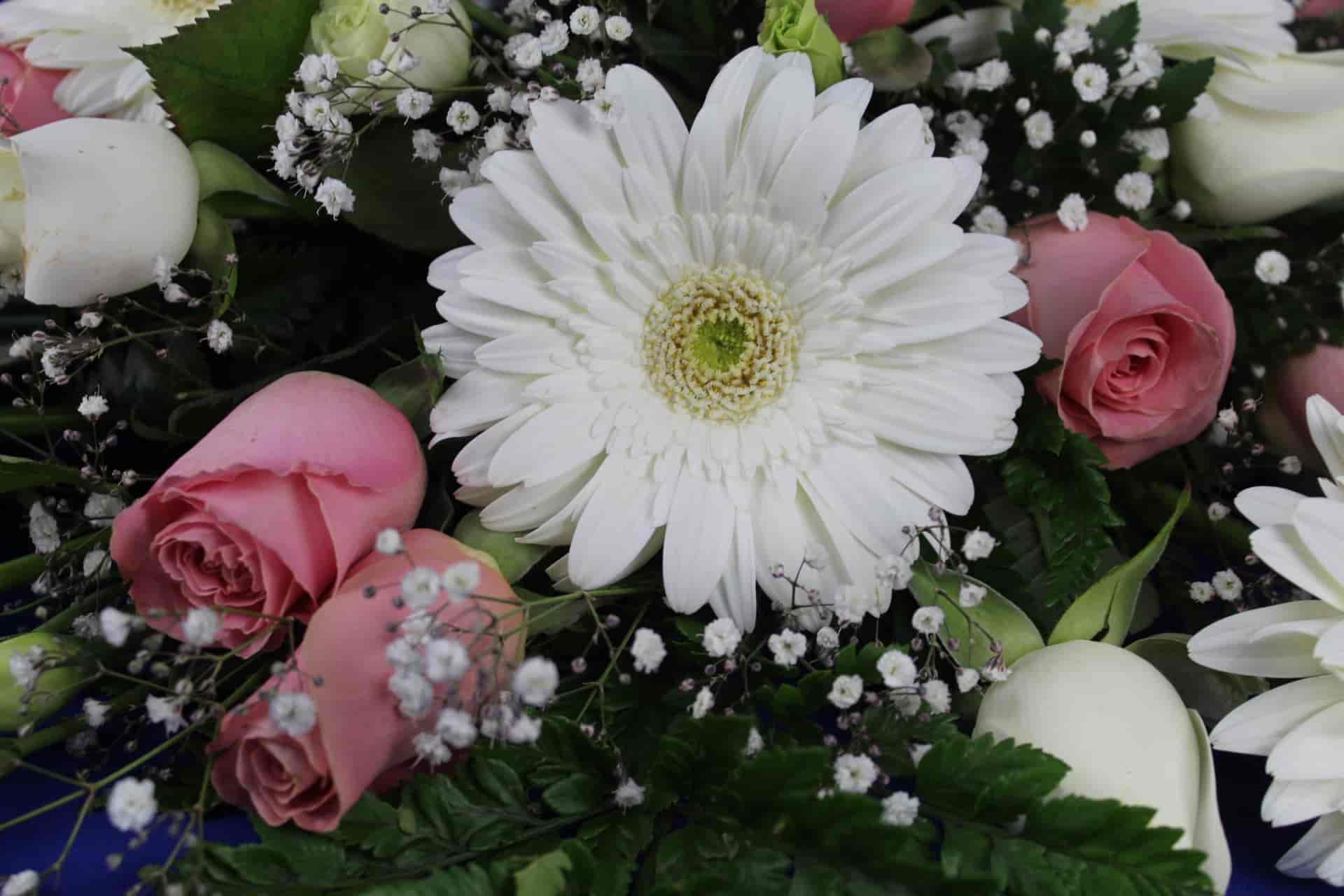 Centro de Mesa con Rosa Hermosa, Gerbera Blanca y Rosa Blanca