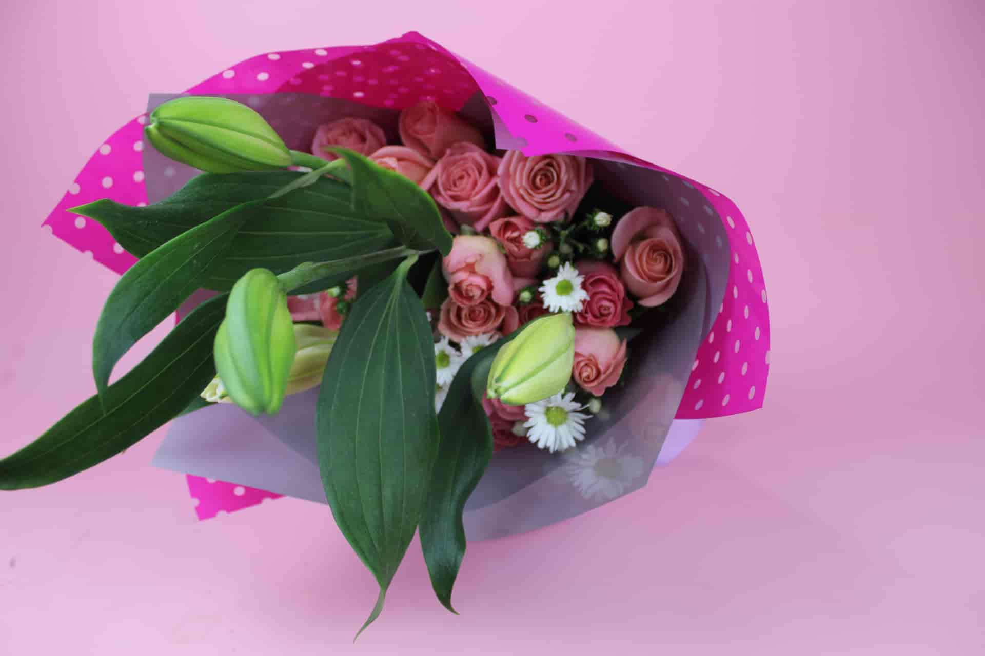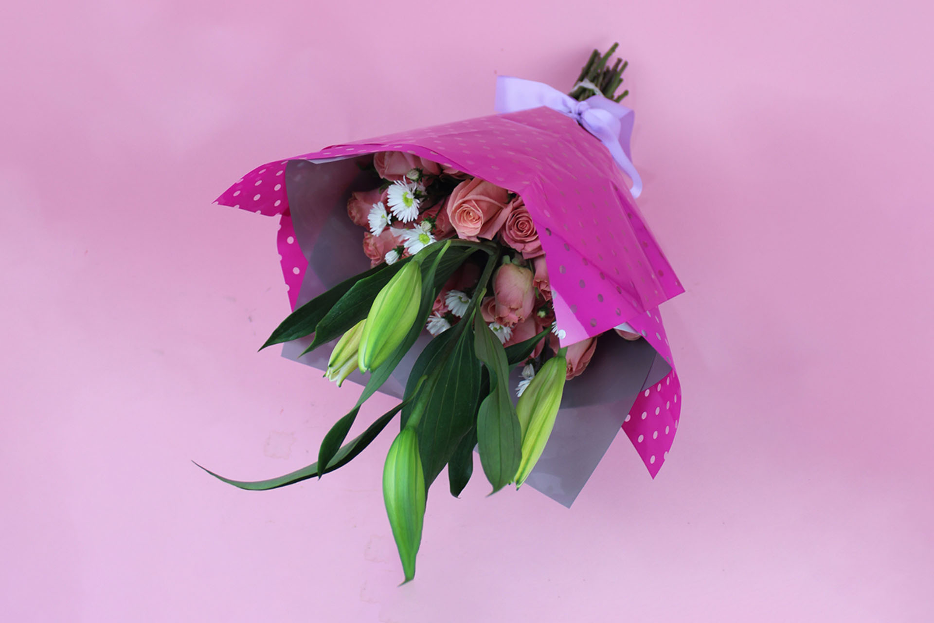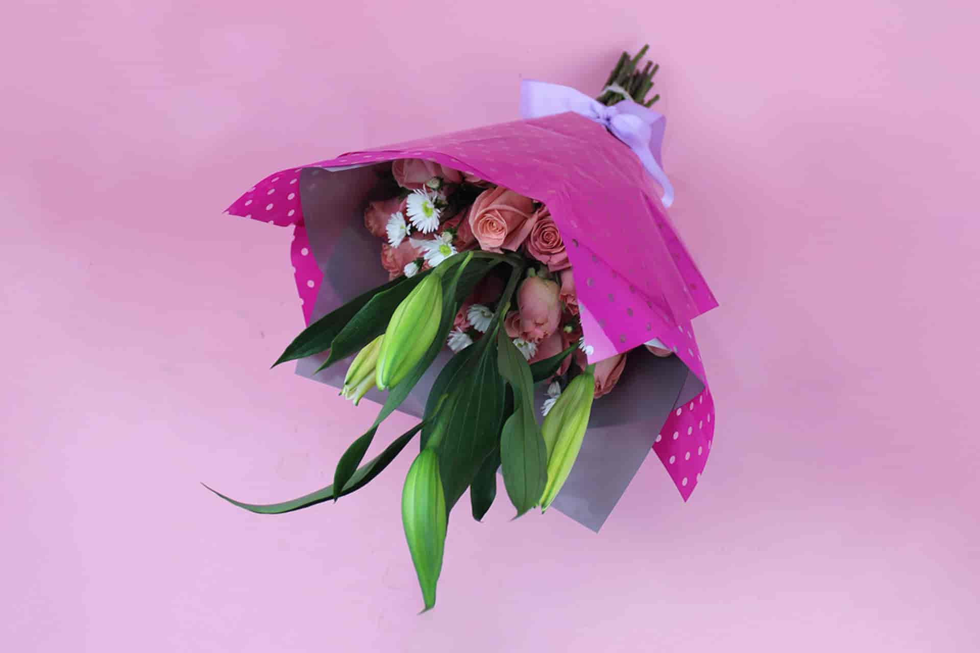 Bouquet de 24 rosas con montecasino y lilis. Ideal para cualquier ocasión.