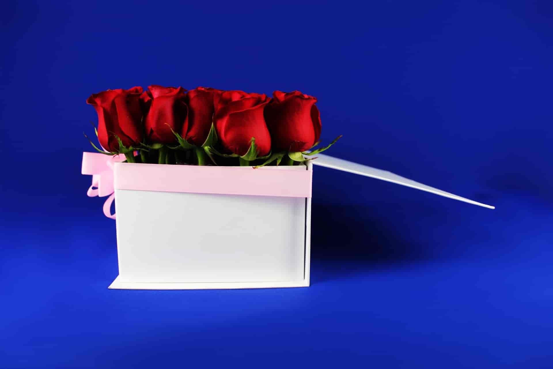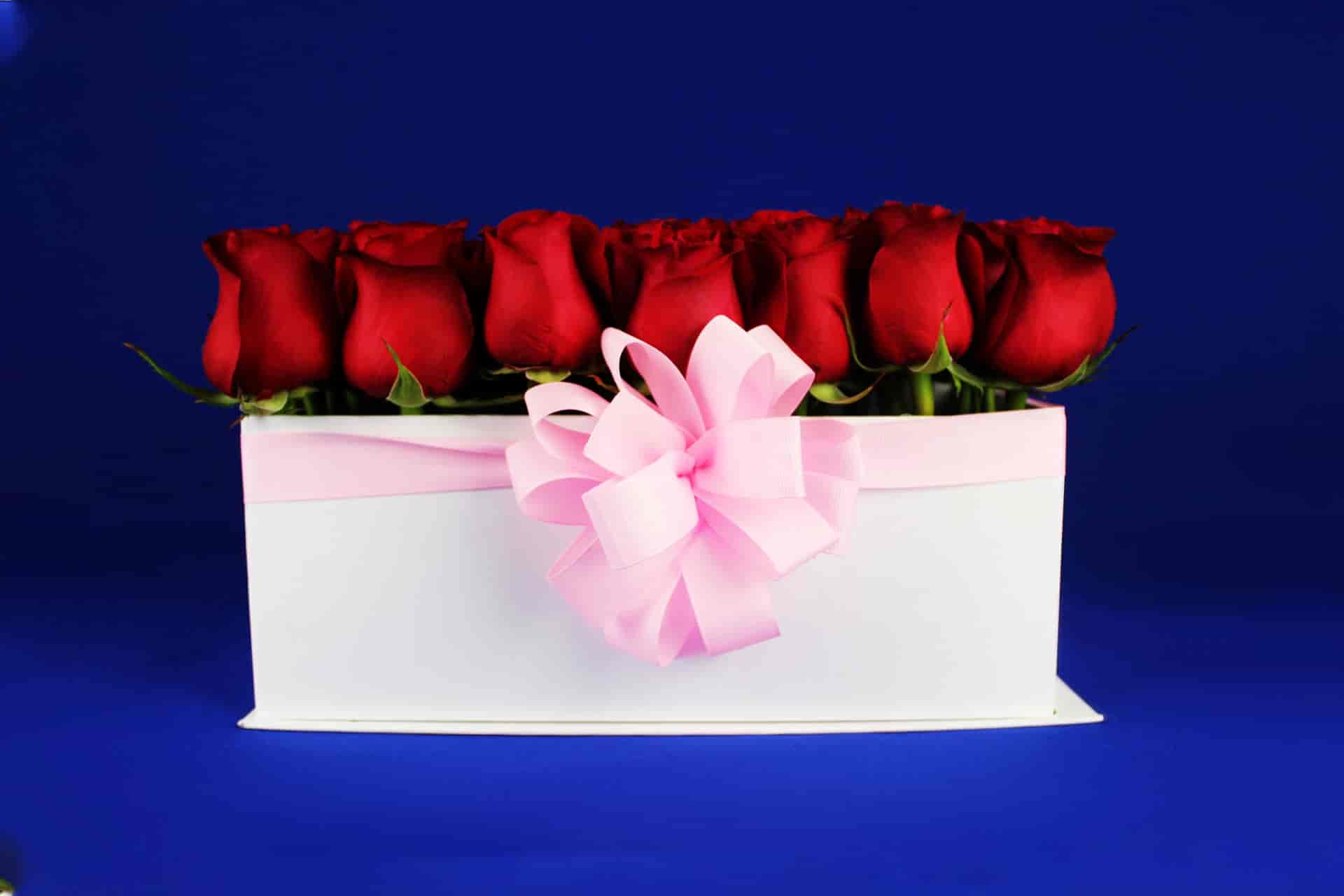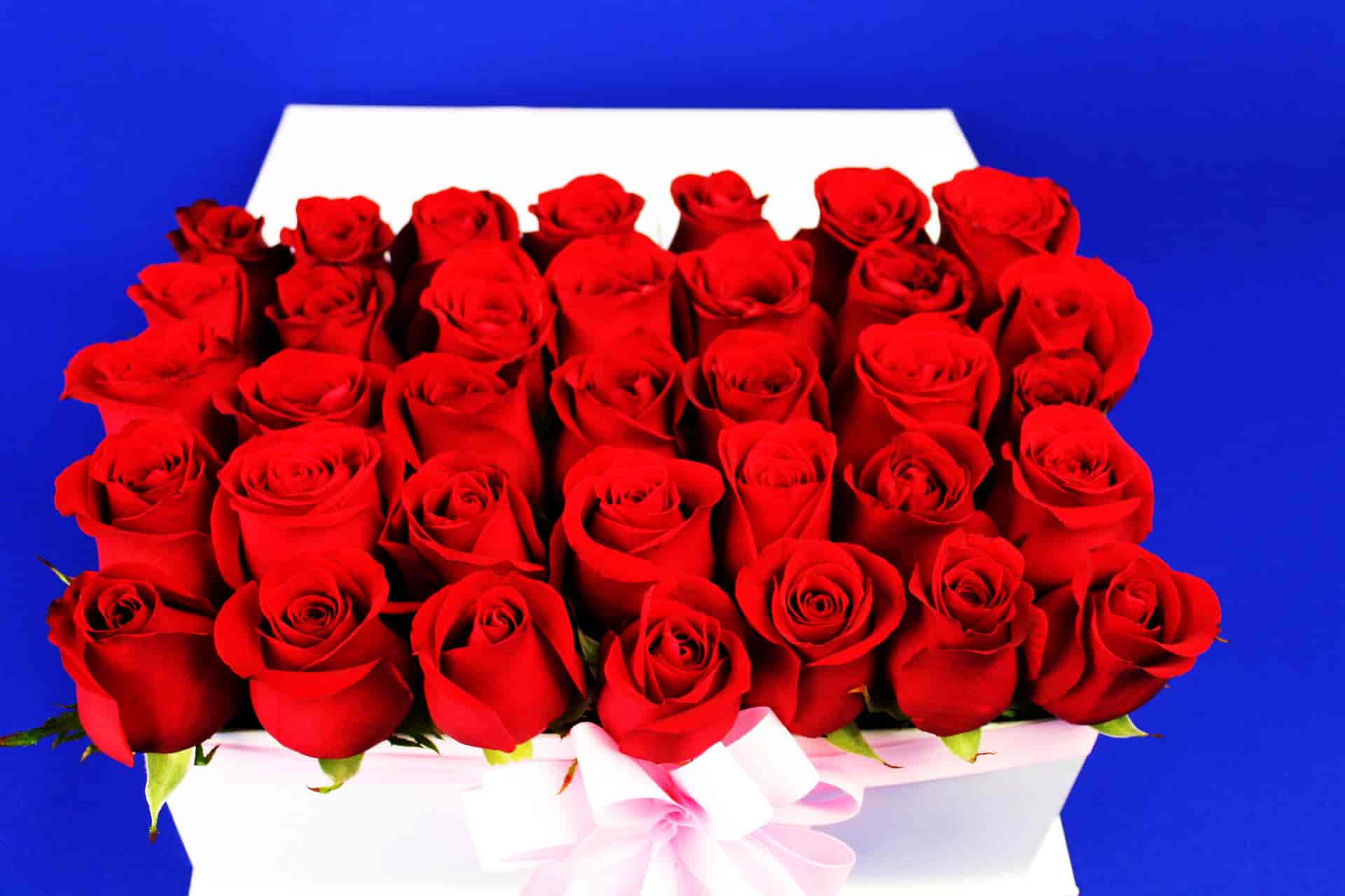 Elegante caja con 35 rosas, preguntar por existencia en color de caja.