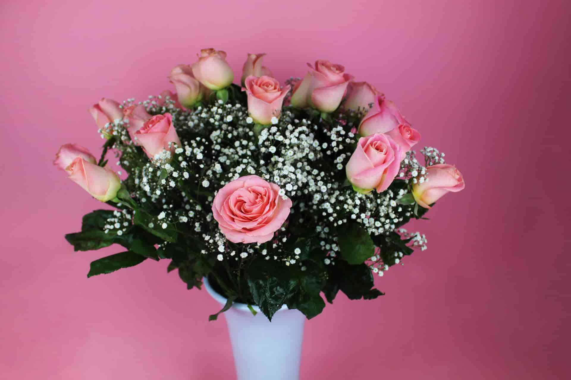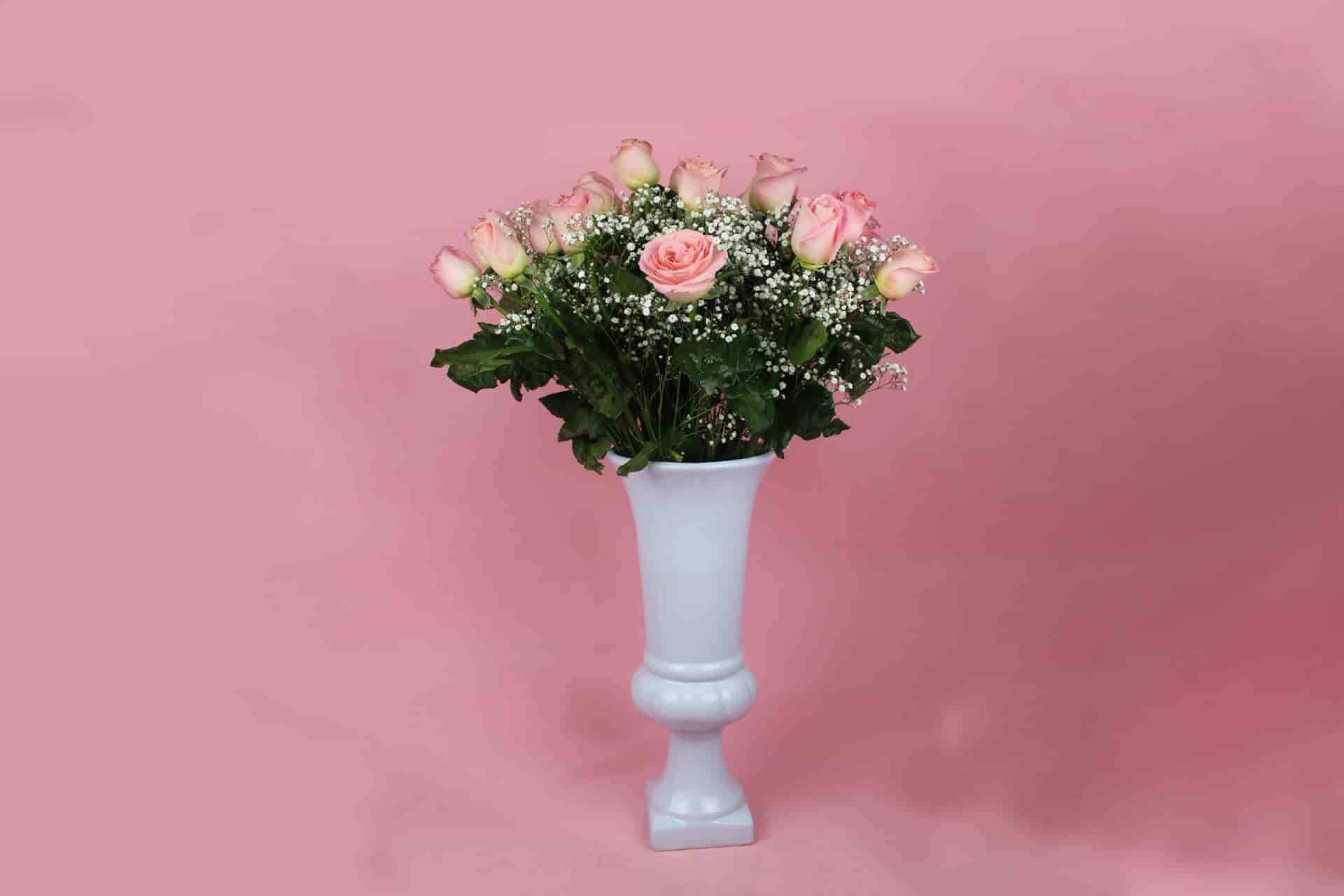 Copa estilo romana en vistas altas, 24 rosas hermosas y gypsophila, el color de la rosa puede cambiar a elección.