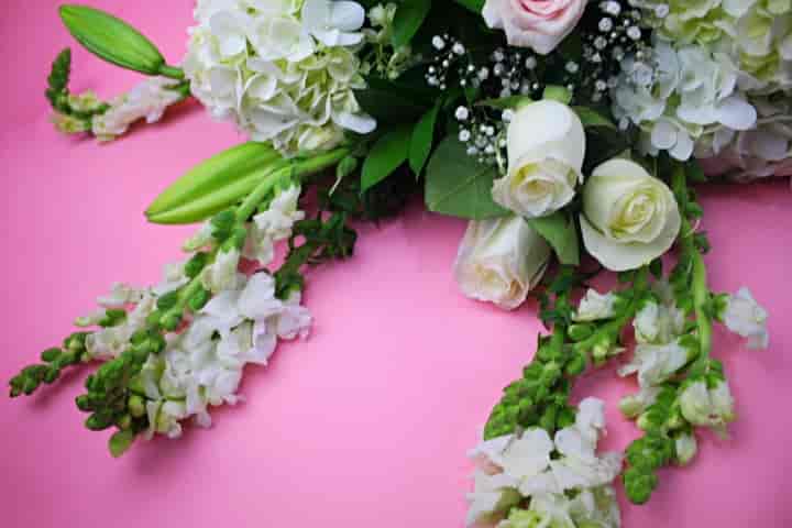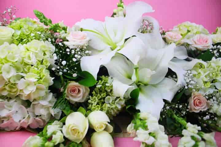 Hermosa jardinera en 1 metro con casablanca, perrito blanco, hortensias verdes, mini rosa rosa y gypsophila.