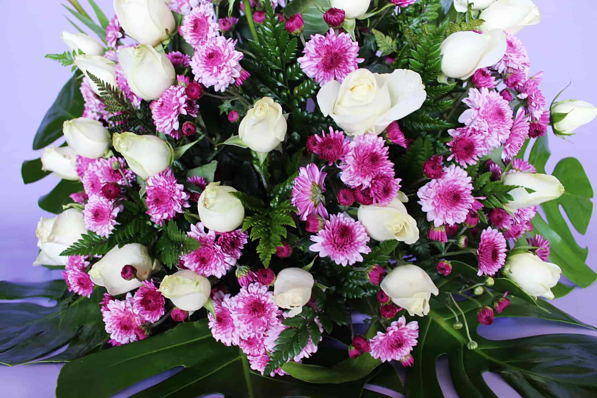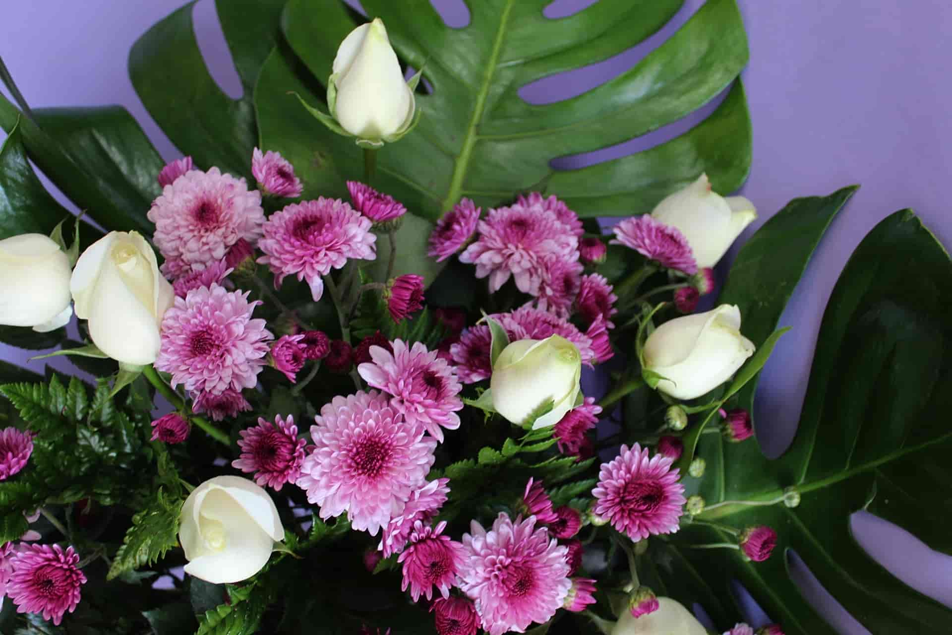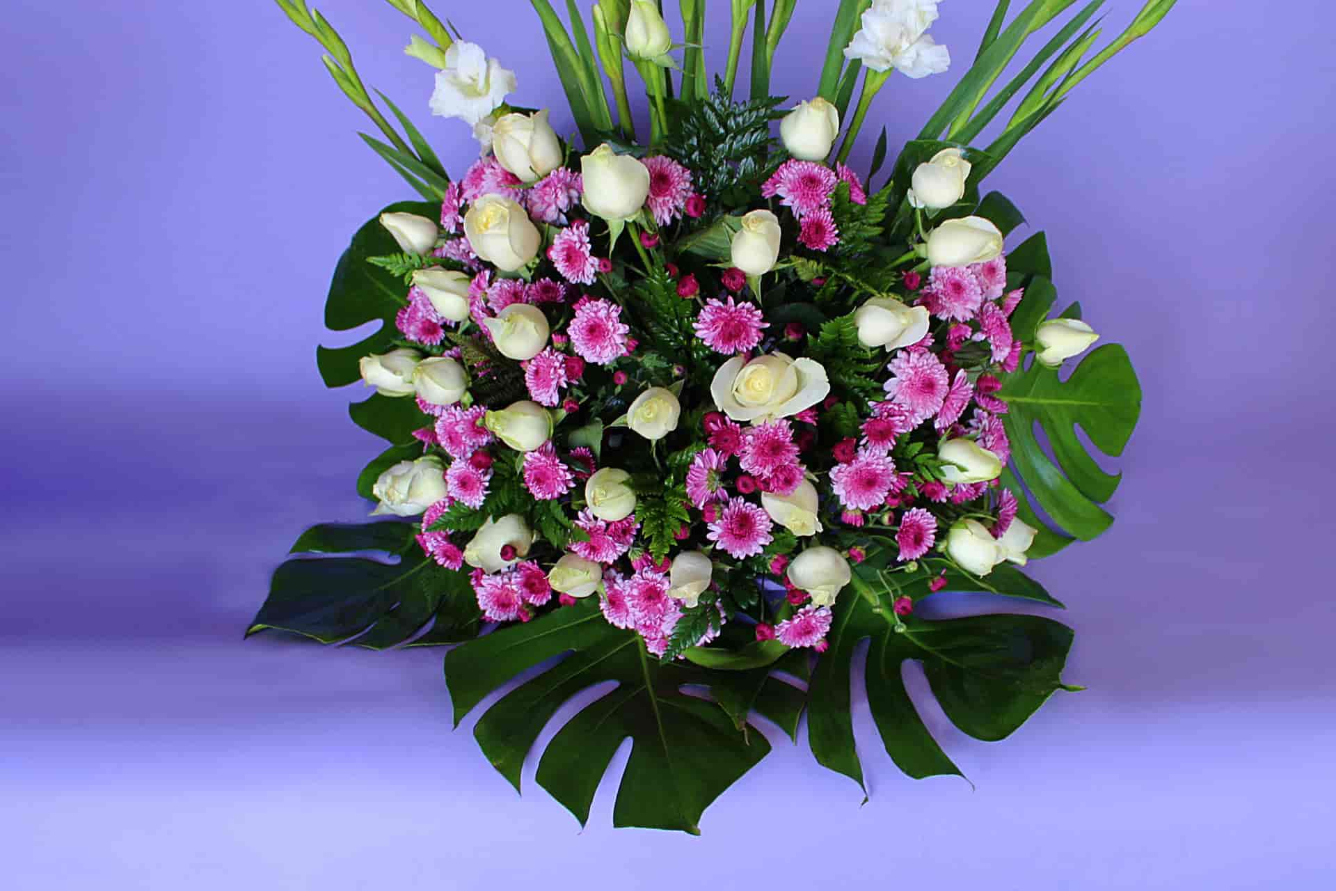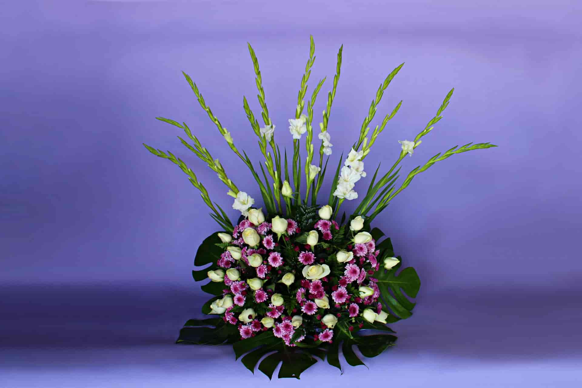 Lateral con gladiola, moreliana y rosa blanca, 70 cm de largo.