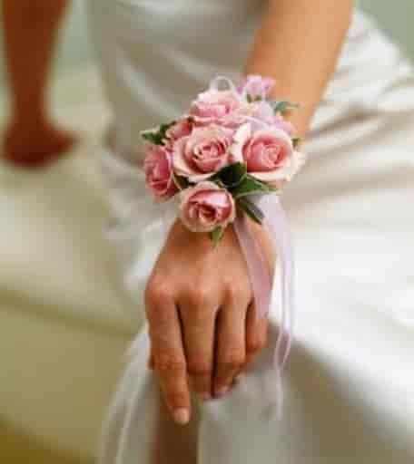 Elegante pulsera con rosas en color rosa, y una combinación de follajes que estarán a la medida para cualquier ocasión.