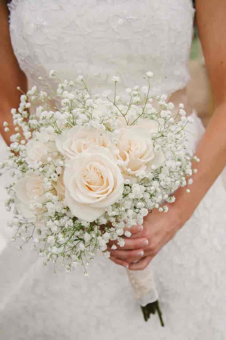 Ramo Novia en Rosas Blancas y Gypsophilia